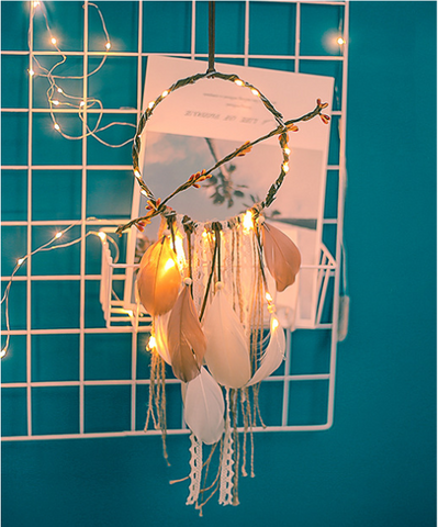 Handmade Dream Catcher With Light Room Decor Feather Weaving Wind Chimes Religious Mascot